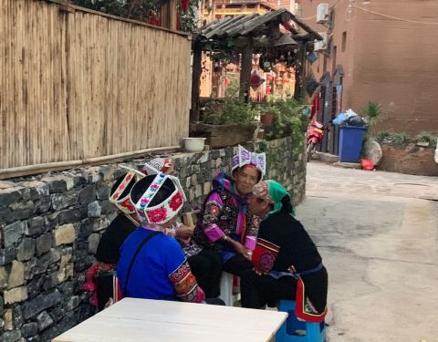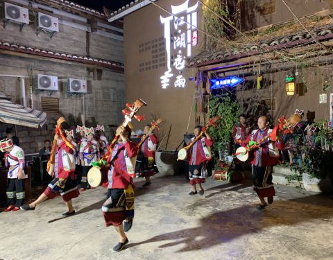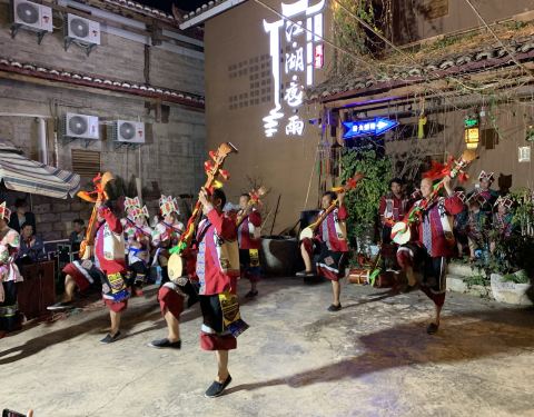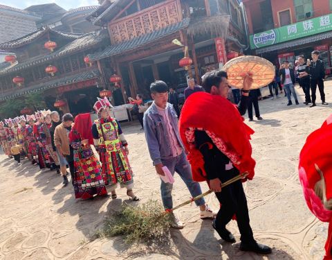 普者黑,彝族语言“盛满鱼虾的湖泊”。与坝美同为喀斯特地貌,而坝美要在2019年3月31日开始关闭景区一年时间整顿。普者黑最适合游客居住的是仙人洞村,全村居民皆是彝族。每家客栈种满鲜花和各种多肉,房间装饰颇具民族韵味。街道肯定饭店、酒吧、咖啡馆少不了。最惊艳的是河边空地上有十几口煮满牛肉的大铁锅。可见游客量之多!正好赶上彝族两个年轻人结婚现场。