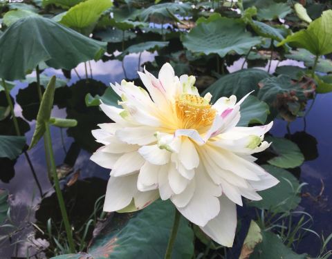 普者黑的湖水很清透,夏季时湖中开出了世界品种最多的荷花,坐船游湖阵阵荷香十分清新