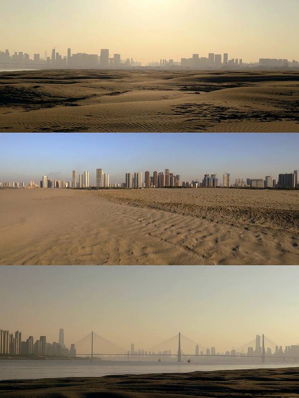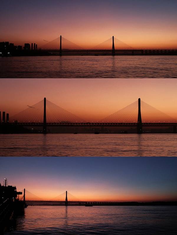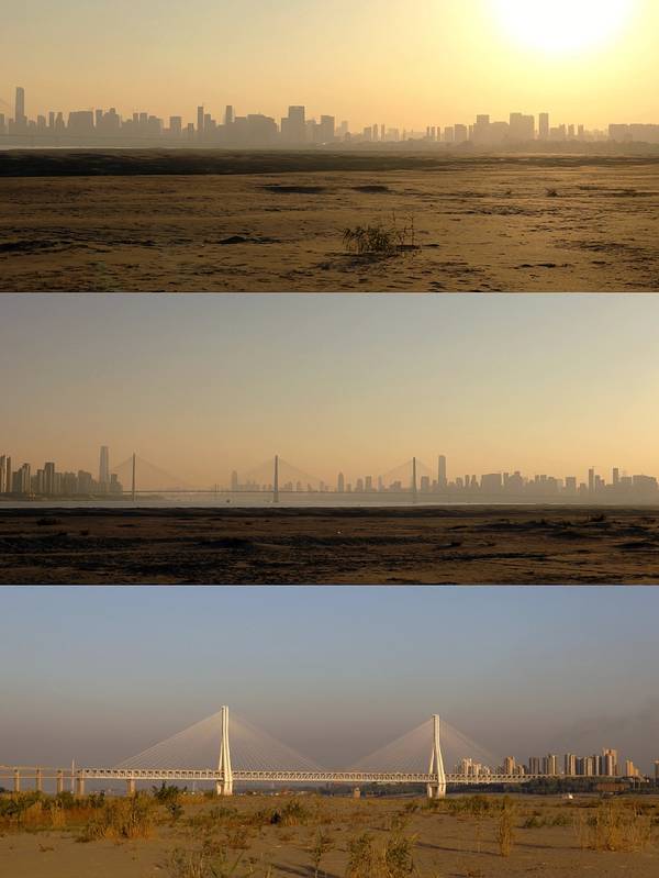 晴秋的午后,不如去天兴洲走走 最近连续的晴天真的好适合出游,趁着秋天还没走远,去天兴洲头追逐一场璀璨的夕阳吧! 地点:天兴洲 门票:免费(自驾可能需要收费) 交通:公交到 青山镇码头 或 工人村路钢谷 站下车,旁边一处就是青山轮渡(码头房子比较破旧,不要怀疑,它真的是轮渡) 时间:轮渡早上5:50到晚上18:00,大约20分钟一趟 到达天兴洲只有轮渡和自驾两种方式,个人推荐轮渡(自驾的话需要预约,其实还是因为自己没有车[失望R])。这一带没有太多高耸林立的楼房,日光下澈,静谧无声,江面泛起点点碎金,一切似乎都回到了最初的美好。从青山码头驶向天兴洲码头后会有观光车开往网红沙滩,单程票10元,返程最好在17:30乘车,才好赶得上末班轮渡。 刚踏上沙洲会有一点失望,看起来就和荒芜的土堆差不多,再往深处探索才会领略到震撼人心的风景。 想要拍出沙丘效果的话可以前往二七桥附近,会有干涸的坑洼起起伏伏,每个小丘还会因风留下波纹的痕迹,仿佛真的置身广漠,足不出汉也能拍出沙海风光大片~ 大自然最深沉的爱永在日暮时分,来天兴洲可千万不要错过落日余晖。乘船看晚霞将天兴洲大桥勾勒,暮紫色的天空又给予了人间绮丽的浪漫。