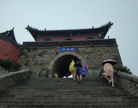它立于泰山之巅,是玉皇顶、碧霞祠的入口,一座红墙黑瓦的明清时期宫门,规模不大,高高在上,登临此地极目远眺,可以将齐鲁大地尽收眼底(天气状况好的时候)。