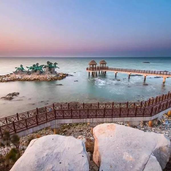 很巧的是烟台是第一次光顾,就来到了著名的秦始皇养马的地方,大桥直接通到了岛上,天马广场就在路口,有几个大型雕塑可以拍照留念。