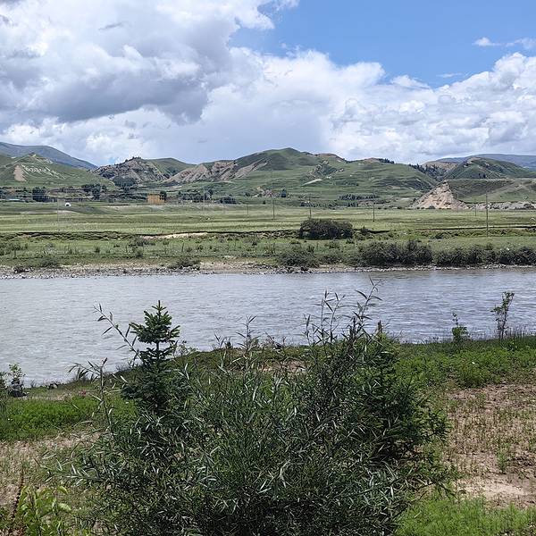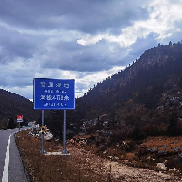 几十公里后,海拔开始大幅提高,进入到平均海拔4500米的海子山地区。沿路景色发生了明显变化,山上的树木草甸逐渐被石块覆...中午时分经过理塘,在街道上打了个卡,然后就驶离了G318,转走G227国道向南行。