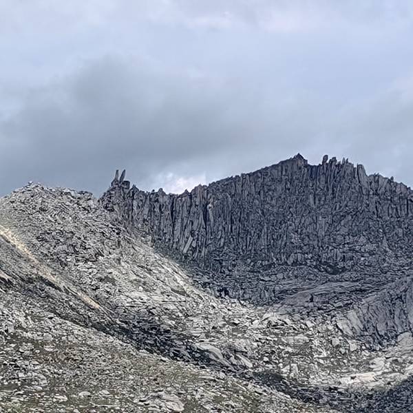 与川西大多数山峰不同,这里寸草不生,怪石嶙峋,别有一幅荒凉的景色。