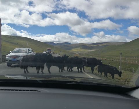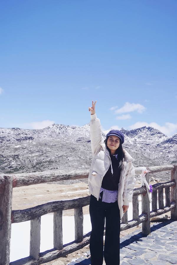这里海拔4700m,狂风呼啸,远处安坐山顶的小兔子注视着对面被冻成狗的我们像一只小兔子~山顶风大,依然吹不倒玲姐的剪刀手还是人少,又承包了这里兔儿山出来,往理塘方向走,还有一处叫喜鹊海的海子