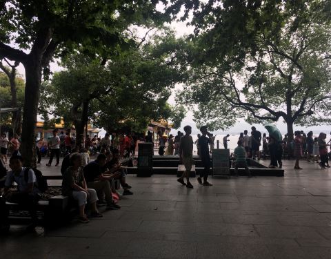湖滨步行街,经过改造,更加宽敞整洁美观。增加了游客歇息的地方,环境整洁,花坛布置生动有趣造型很有西湖特色,周边商场四通八达,实现了游湖、休闲、购物、餐饮一路走通