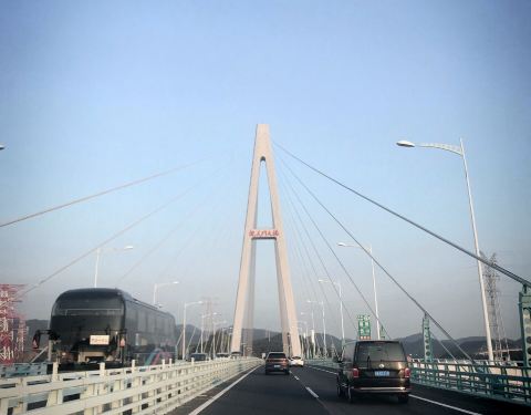 桃夭门大桥是舟山跨海大桥五座桥中的第三座大桥,系双塔双索面特大型混合式斜拉桥,桃夭门大桥跨越桃夭门水道,连接富翅岛和册子岛,全长888米。