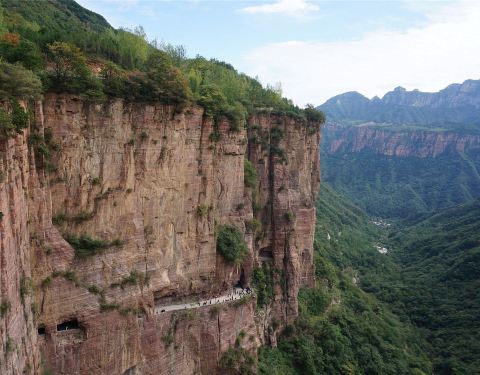 万仙山郭亮村挂壁公路位于河南省新乡市辉县沙窑乡郭亮村,建于悬崖峭壁上,开凿于1972年,也被称为绝壁长廊,是全球最奇特的公路之一。
