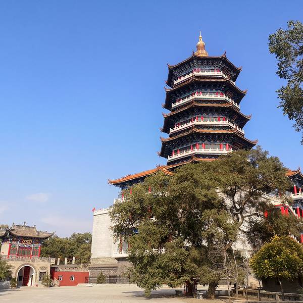 高高的竖立在龙首山顶峰,面向辽河,视野开阔,景色不错,楼下就是道教胜地福寿宫,原建筑毁于战火,现有建筑是02年从新修建。