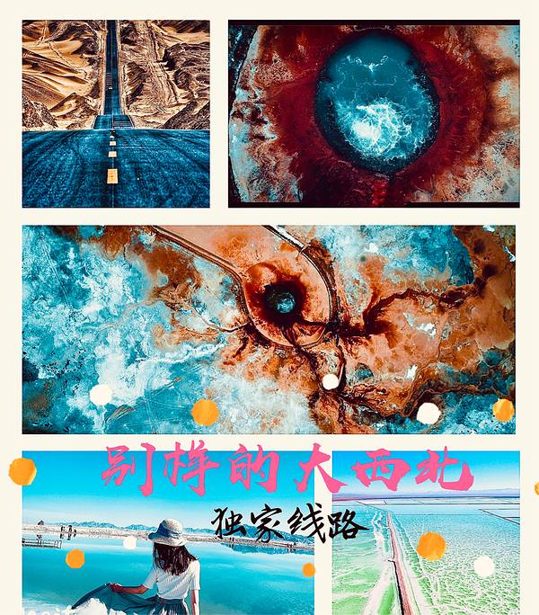 第一站——网红景点:U型公路(三个钟才到达)途经小柴旦湖,挺漂亮(早餐还没吃就出发赶路,后到了清真店吃了碟番茄鸡蛋拌面,20/碗,路途都很偏,资源紧张,水:70/一方,所以去洗手间都是个大大问题,大多是旱厕,忍受不了的就要憋了) 第二站——东台吉乃尔湖(中国的“马尔代夫”一定要去,与青海湖相比更漂亮。)不用门票里面有帮航拍100/人,还有水中有玻璃船50/人,穿裙拍出来更好看哦。 第三站——远看的水上雅丹(门票130/人)没进去就远观,水是衔接东台吉乃尔湖,就是插入了一些雅丹地貌泉水 从青海——敦煌路上: 途经:阿当山(在公路遇见一大货车在运输发电大风车,撞到小轿车,瞬间令整条公路大塞车,长长车龙,左边都塞住的都是大货车) 再途经阿克塞——石油小镇(魔鬼城)(门票40/人)没进去,攻略写:一辆烂的大货车做焦点,进去拍照。一点都不感冒所以就没去了。