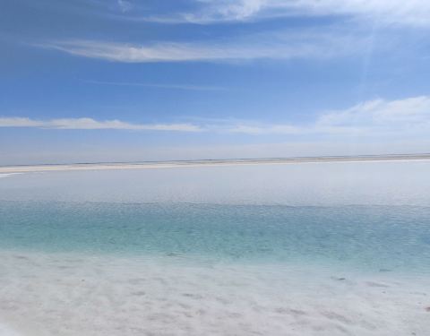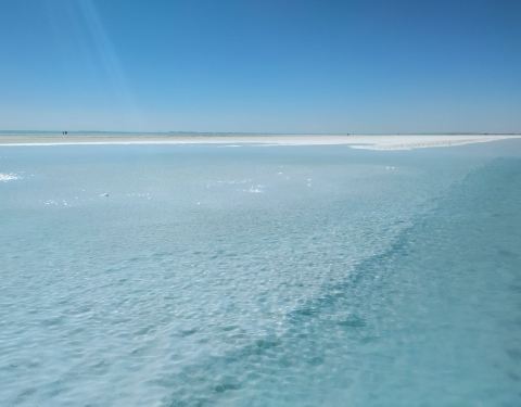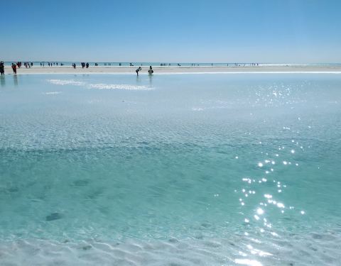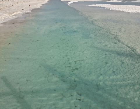 道路在湖的中间穿过,由于盐分含量极高,最好不要用手触摸。