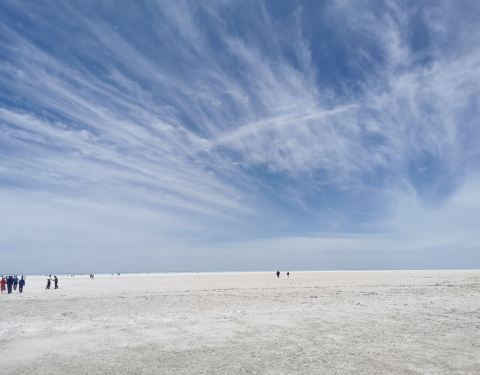 走过最美的315国道U型路,终于到达东台吉乃尔湖走过最美的315国道U型路,终于到达东台吉乃尔湖。 东台吉乃尔湖是一片很大的盐湖,主要有三个入口,从东往西第一个和第三个都是行人自己走出来的路,因为湖边到公路大约有1公里的路,所以,很多人把车停在...走过最美的315国道U型路,终于到达东台吉乃尔湖。 东台吉乃尔湖是一片很大的盐湖,主要有三个入口,从东往西第一个和第三个都是行人自己走出来的路,因为湖边到公路大约有1公里的路,所以,很多人把车停在路边,步行到吉乃尔湖,第二个是有人修的一条临时公路,穿着盐厂制服,收费10元随便停,但他们7点下班,因为青海9点才落日所以,所以7点以后可以随便进出了。 和大柴旦翡翠湖比起来,东台吉乃尔湖的颜色要浅一些,层次也没那么多,可能和云层多少有关系,而且东台吉乃尔湖水对皮肤刺激远没有翡翠湖高,翡翠湖水沾上皮肤会有灼烧感。那天云层比较厚,光线从云层钻出来投射在湖面上,犹如一道道光柱,非常漂亮。此行有个遗憾就是没有去西台吉乃尔湖,位置在东台吉乃尔湖的西边,如果是从格尔木方向过来,只需沿着315继续前行就能到达,公路将湖面分成两个部分,一半是绿的一半是蓝的,非常有趣。 展开