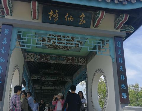 古朴凝重、亭廊连结的会仙桥在太湖仙岛上,到了这里,是一定要摆上几个pose,和仙人约会一下,只是有人很多,用手机想照一张没有其他人的照片,要等很久……