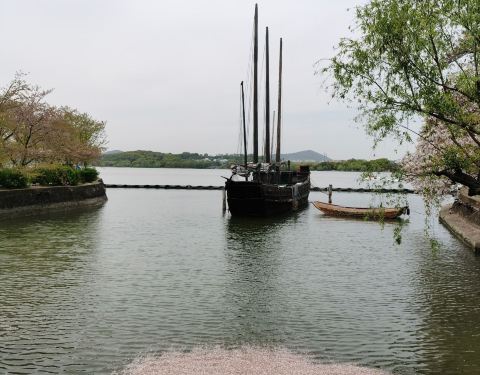 看了郭沫洛为太湖写的这句话之后才决定来太湖看一看,4月份的时候来,樱花已经开始落了,不过正好可以看到樱花雨,整个水池子里边落满了樱花,很美的感觉呢。