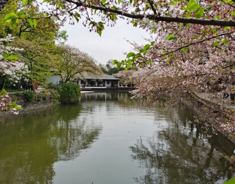 只是整个太湖风景的最佳处,里面的亭子建的超级的美,配合着一个水池里边的樱花雨,真的是超级的美,每一个地方都透露着江南的柔美!太喜欢这里了!
