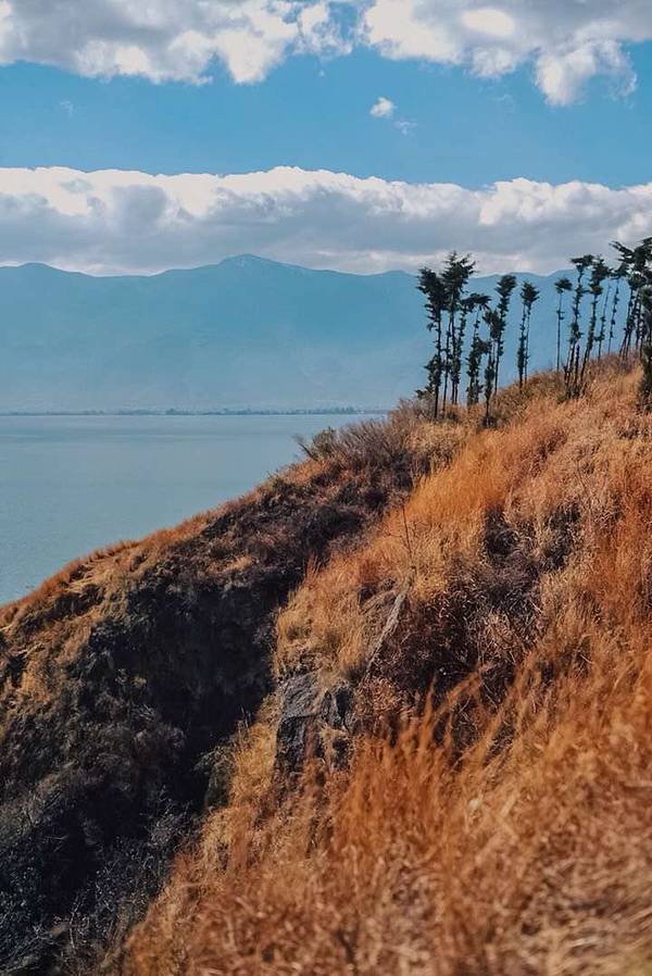 这样浪漫的名字,拍照也很浪漫,悬崖枯草,洱海界碑,苍山洱海第四站:鹿卧山遗址(15:30到达,游玩15分钟)