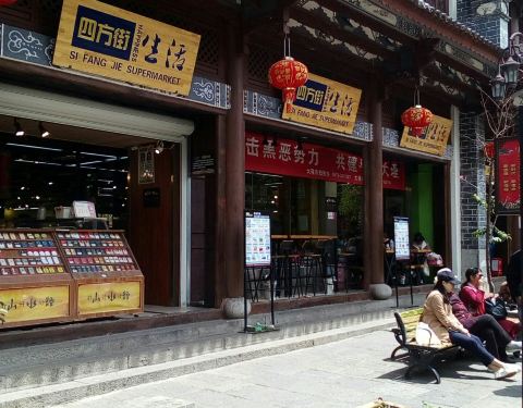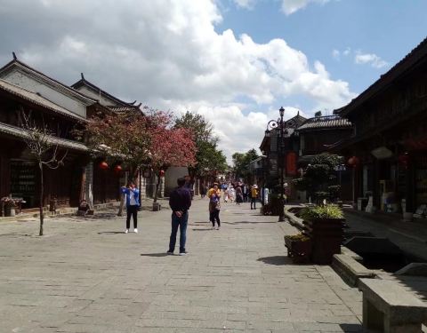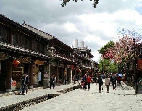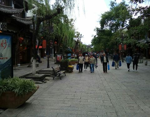 经营扎染服装、鹤庆银饰、大理石工艺品、缅玉、普洱茶、果脯等具有地方特色的旅游商品步行街。