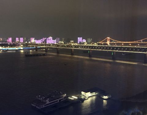 住在旁边的晴川假日酒店,正好是江景房,能一睹桥上的夜景,非常壮观。