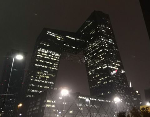 北京电视台大楼位于东三环的大北窑外,是附近地区的标志性建筑,整个外墙被铺上了显示屏,可以显得精美的画面,每到重大节日,她在夜晚放映振憾画面。