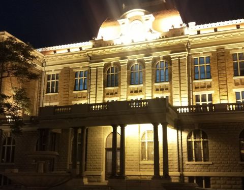天津外国语大学有马场道和滨海两个校区。该校区位于天津著名的五大道风景区马场道117号。晚上骑行五大道时经过。 该校是全国最早独立设置的八所高等外国语院校之一。外语专业强,外国留学生多。 马场道校区地处天津市中心,地理位置绝佳。这里的建筑颇具民国风,又以欧式建筑风格为主体,校园标志性钟楼建筑群是天津十景之一。 校红砖瓦墙很有特色,非常适合取景拍照。 优美的校园风景环境和独具特色的建筑风格也吸引了众多影视剧来此取景。 电视剧《金粉世家》就曾在这取景,电影《毒战》和《催眠大师》也曾来此拍摄,林俊杰的音乐MV《被风吹风的夏天》也在这里摄制过镜头。 可惜本人只是晚上路过,有机会再去天津还是要好好逛逛五大道,也再好好看看这所大学校园的魅力风景。