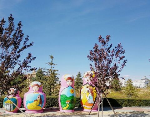 到满洲里,来到了“猛犸故乡”——扎赉诺尔, 源于三万年前这里生活着大量猛犸象,1980年以来这里的露天矿相继出土了三具保存完好的猛犸象化石,其中一具是我国屹今古象化石标本中最大的一具, 获得上海大世界吉尼斯之最的“规模最大的猛犸象雕塑群”; 精美的欧式建筑,满满的异国风情……, 多久没有看到这么蓝的天空了……,