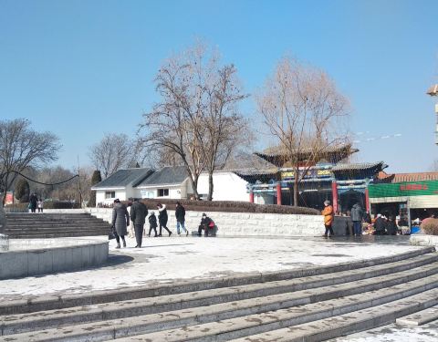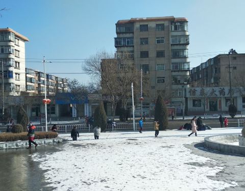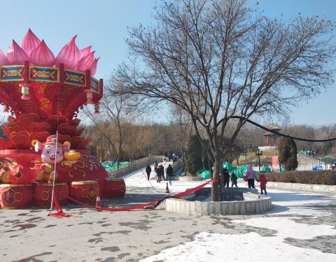 在白银区中心,以湖泊和丘陵组成的一个城市公园,不收费,占地面积很大。由于是冬天,湖面结冰,不少人在这里滑行。白银海拔两千米,有点感觉。
