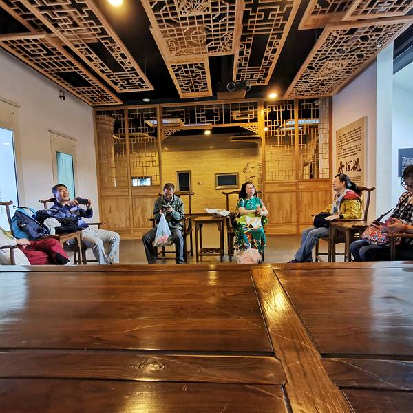漫步穿行走过了古老的黄河铁桥,来到金城关下,这里修建有黄河铁桥建桥历史的博物馆和一些介绍兰州民俗的博物馆,带同学们过来参观了解一下! 今天天气真是好,又是午后,非常热,30多度了,也没人积极照像了!只有大家在这儿歇息的一张照片了!徐太兰州也有同学,参观完民俗展,就和徐信赴另一个同学会了。其余同学来到白塔山脚下的游廊休息!
