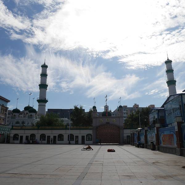 #写点评拿旅行基金#道外的一个广场,面积不小周围有超市和清真寺还有一些牛羊肉店铺,交通便利,清真寺历史悠久。