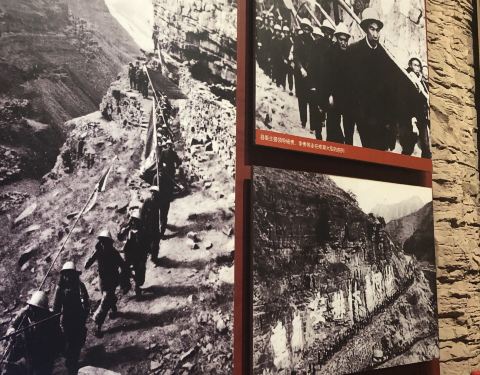 走进红旗渠纪念馆,看着纪念馆内一张张模糊又生动的老照片,看到60年代的报纸上“重新安排林县河山”的大幅标题,千军万马战太行的生动场面,我和所有参观者一样心灵受到了强烈的震撼,在这里你才会真正理解开天辟地、战天斗地这两个成语的深刻内涵。