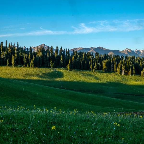 喀拉峻草原降水丰富,气候凉爽,土质肥厚,十分适宜牧草的生长。村民以养殖为生,万头牲畜都转场来到这里避暑抓膘。就连巩乃斯种羊场娇贵的种羊也以此地为消夏之处。