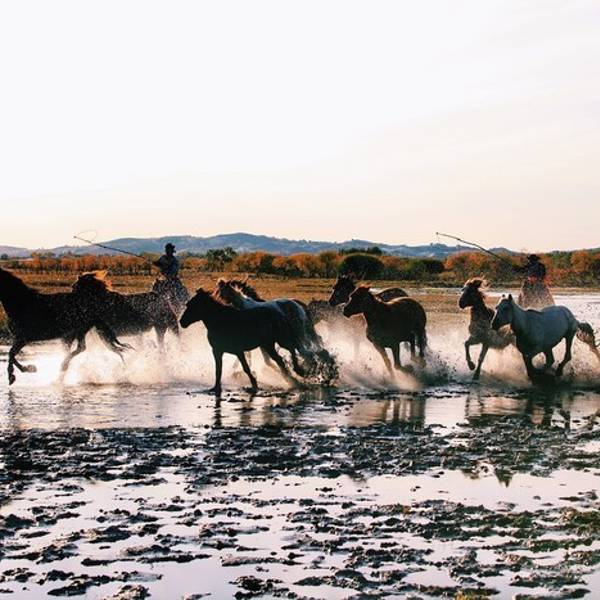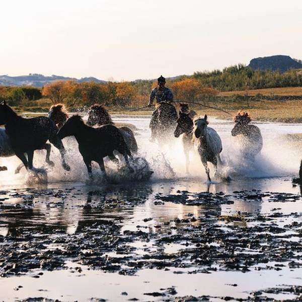 15:00驱车前往【小河头】拍摄跑马+日落。不太确定是否其他时间也有跑马表演