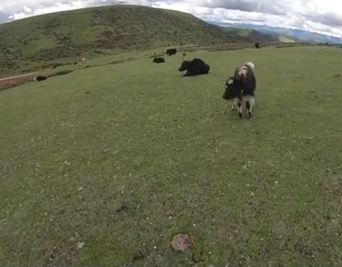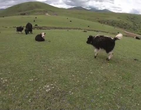 这些可爱而安逸的牛群,还真是有乐趣啊! 果然,进了当地熟人的牧场,给我们看了新生才一两个月的小牦牛