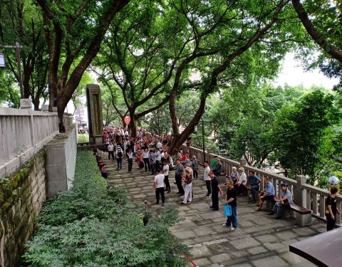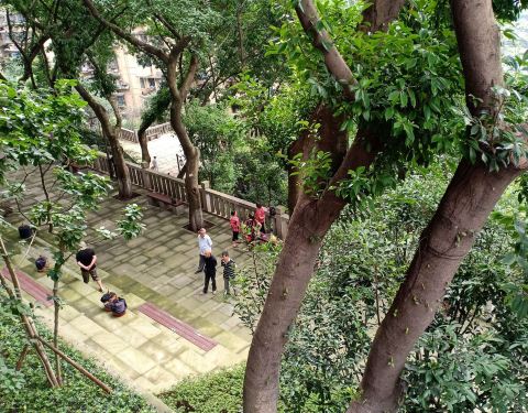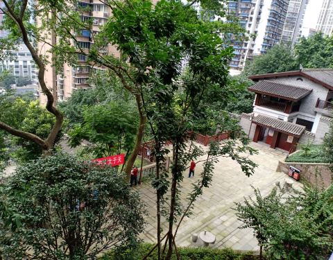 重庆人民公园就在解放碑附近200米左右,园内有参天大树,亭台,花鸟等。早上有一些大妈大爷在那里锻炼,这里游客不拥挤,是锻炼的好地方。