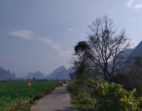 乡村田园风光。真的适合度假。接近大自然,放松心情。欣赏阳朔的风景,交通不是很便利,私家车比较方便出入,值得一来,遇龙河景区内!