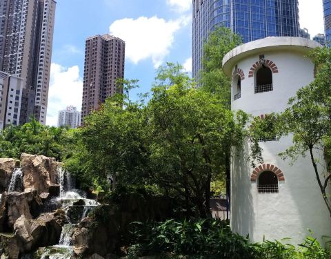 荃湾公园,就坐落在荃湾西地铁站外面的地方,旁边就是如心广场,地理位置还算是不错的,从地铁站出来过马路就是了,这边虽然不算是特别有特色的一个公园,占地面积也不算特别大,但是附近因为都是居民的小区,所以大家过来散步还是比较的方便,在公园里面还有一些健身设施,可以免费提供,甚至还有专用的宠物区域,可以说是比较的贴心了。