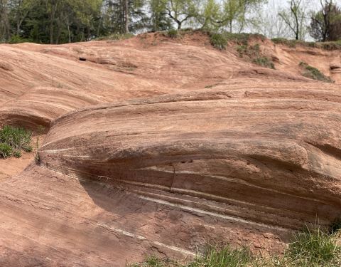 济南市莱芜区有个红石公园,开放式的公园,水景、石景、植被经过设计搭配,建成了体育休闲主题公园,适合市民平时休闲消遣。公园有较大面积的露出地面红石而得名。据考证这些色彩鲜艳、花纹奇妙的红石,生成于一亿多年前的中生代侏罗纪,通称红层,莱芜境内的红层仅残存于近东西向的莱芜八里沟向斜的槽部,分布在莱城及东南一带。非常有特色。