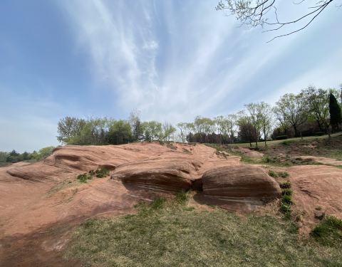 济南市莱芜区有个红石公园,开放式的公园,水景、石景、植被经过设计搭配,建成了体育休闲主题公园,适合市民平时休闲消遣。公园有较大面积的露出地面红石而得名。据考证这些色彩鲜艳、花纹奇妙的红石,生成于一...
