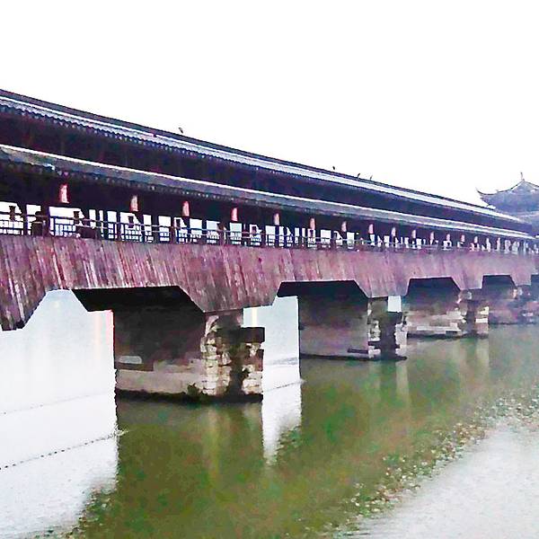 ...江上有西津桥,是个有300年历史的木质步行廊桥,跨度很长的历史保护建筑,也是永康市的标志性建筑