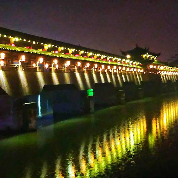 由诸暨抵达永康,地处永康市中心的永康江上有西津桥,是个有300年历史的木质步行廊桥,跨度很长的历史保护建筑,也是永康市的标志性建筑。我也是经过永康看到了西津廊桥之后才有了泰顺县的廊桥之旅。 夜晚木质廊...