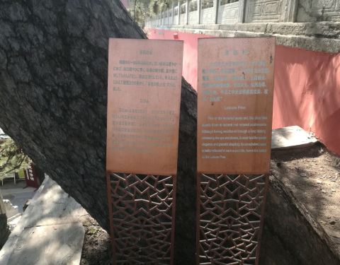 主干蜿蜒横生向石栏杆外、树皮斑驳,宛如一条降雨归来的苍龙,爬过石栏,舒适地卧在一块石碑上歇息卧龙松是戒台寺十大名松之一,有1000多年的树龄了。主干蜿蜒横生向石栏杆外、树皮斑驳,宛如一条降雨归来的苍龙,爬过石栏,舒适地卧在一块石碑上歇息。碑上所刻的“卧龙松”三个大字是清代恭亲王奕訢手书。