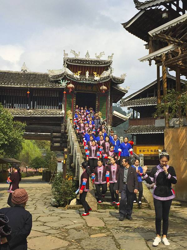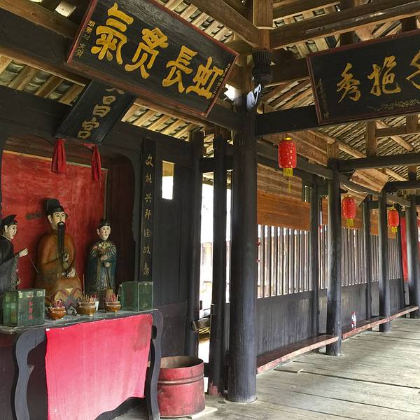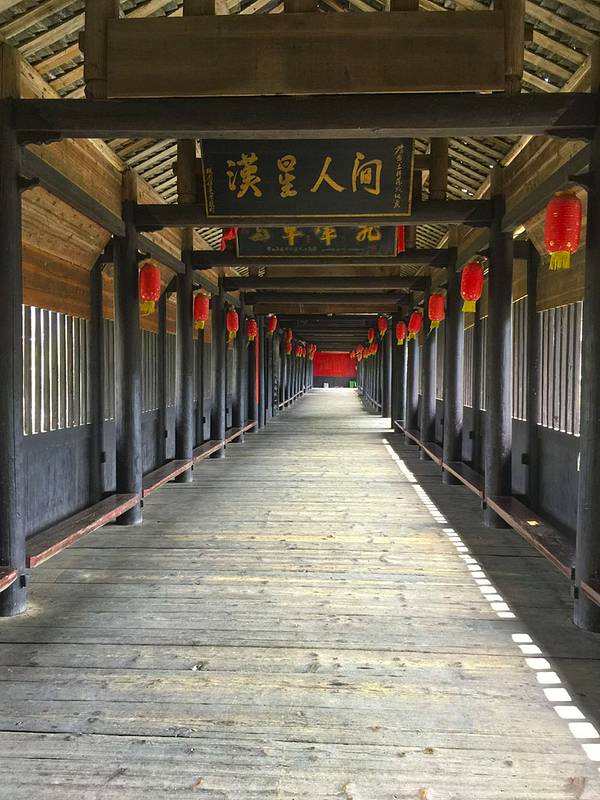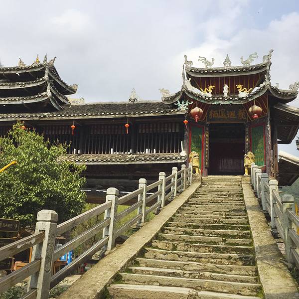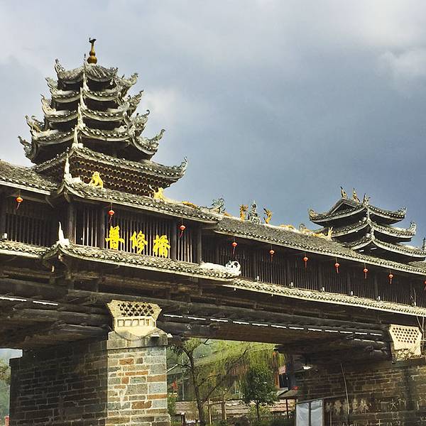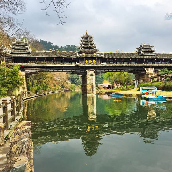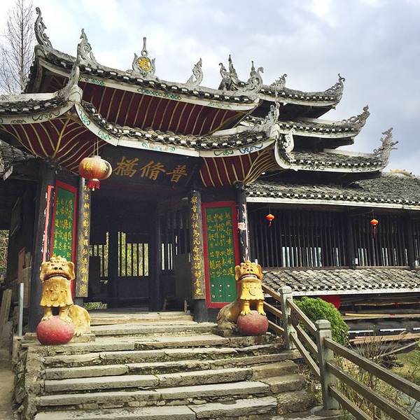普修桥位于湖南通道县皇都侗文化村内,是一座漂亮经典的侗族廊桥,始建于清乾隆年间,后毁于洪水,清嘉庆八年重修,1984年复修,2007年寨民对桥体又进行维修。所有古迹必需这样不断维修才能保存至今,只是修缮的水平有所差异,不要修成崭新模样。普修桥如今的欣赏状态非常不错,让我很满意。桥全长57米多,宽4.2米,桥身为重檐长廊,两侧是直棂窗,有三座桥亭,桥两端各设一座桥门,为重檐歇山顶,屋脊和檐角泥塑龙凤等,桥门都朝向一侧,而不是正中,这点也很有特色,在一般廊桥中很少见。桥门两边桥亭为三重檐,中间桥亭有七重密檐,下三层为方形平面,上四层为八角攒尖葫芦顶,顶尖泥塑青鸟一只,也是能迎风鸣响的。桥亭檐角起翘高挑,雕塑精致,曲线优美。桥廊脊泥塑两组双龙戏宝,宝珠用小块玻璃境片组合镶嵌而成,装上风叶,风起叶动,声光交映,美不可言。 檐板上彩绘各式各样花草,五彩缤纷,艳丽多姿。三座桥亭内设神龛,中亭关圣殿,两端亭分设始祖祠和文昌宫。哇!真是非常复杂的一座廊桥,在阳光下美艳无比。让我爱不释手地围着看着、赏着、拍着,不想离开。外面看够了,又回到桥厢内坐着,东摸西看。这时来了一队身着民族服装的侗族队伍,听说好像是程阳八寨来这里学习取经来的,阳光下从桥门走下来,一下子给古桥增加了灵动气息。实用攻略: 门票: 100元,4月20日-12月20日 70元,学生和老人(60-69周岁) 5折优惠票。 开放时间:8:00-18:00 交通: 从通道县城有到皇都的班车,半小时车程,车次较多方便。 住宿:普修桥头的聚友客栈,是网友推荐的,但真的很勉强,窗子又破又小,木屋条件简陋,舒适度很低。后来玩到村子里面发现有两个规模大些的客栈,条件应该好些,但窗外没景色。美食:聚友客栈楼下就有小饭馆,味道价格还不错。