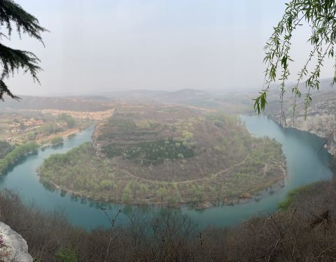 这个周末去鹤壁找朋友玩,早上吃完饭,朋友直接带着我一起自驾去太极图景区了,我之前根本没听说过,一路听朋友介绍没想到鹤壁还有这么个景区,听说是周文王顿悟得地方,太极八卦的发源地,淇河在景区里面“S”形绕着南北两架山流,所以看起来酷似古太极图中的阴鱼阳鱼,对太极文化一知半解的我一到这里,迫不及待的登上文王观图台,站在当年文王的视角,一览这个国内最大的天然太极图景观。真的是俩字,震惊,仨字,很震惊,四个字,些求震惊!天呐,真么那么像八卦呢。真为河南还有个这么有文化底蕴得地方感到骄傲!