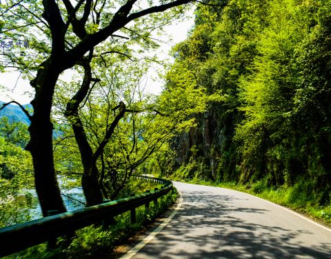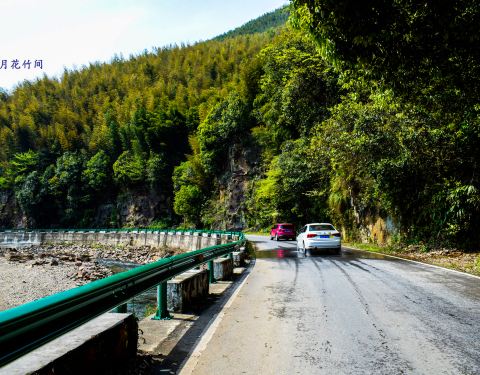 【宣城泾县月亮湾生态旅游风景区】月亮湾旅游风景区位于安徽省宣城市泾县蔡村镇内,蔡村镇是“华夏毛竹第一镇”,景区目前属于AA级国家旅游景区,这里曾是上世纪80年代《月亮湾的笑声》、《月亮湾的风波》电影、2006年《红色记忆》电视剧等拍摄地。沿途有山涧吊桥、鸳鸯潭、惊豹观竹海、犀牛望月、明清古栈道和施村古民居等景点。 月亮湾整个河流弯弯曲曲,临近的公路也是弯弯曲曲,真是山路十八弯啊。在这里每年5月到10月是旅游的旺季,不少人来此游玩漂流,漂流上至东园,下至吴家桥长达9公里,在一米左右深浅的河流上,相互嬉戏,感受在山水之间的乐趣。然后品尝这里的美食,这里的农家乐酒店非常的多,沿着河流公路分布在两侧。 【交通】可以在泾县县城的泾县短途汽车站坐到爱民的中巴车,可以在中途蔡村镇下。最好是自驾去,但是山路弯曲注意安全。 在月亮湾风景区,马路两边的民宿酒店多以徽派建筑风格为主,这里山清水秀。 非常多的外地游客开车来此,停在河流边游玩,吸收这里的山水之灵气,一吐往日的烦愁。 我是今年4月12来此的,有人不惧春之冷漂流起来了, 马路一面是山一面是水,竹林繁盛。 道路弯曲,山高视线短,开车需谨慎。 这里绿水青山,这里如世外桃源,这里是适合老年人居住的养老佳地,这里也是夏秋旅游好去处。