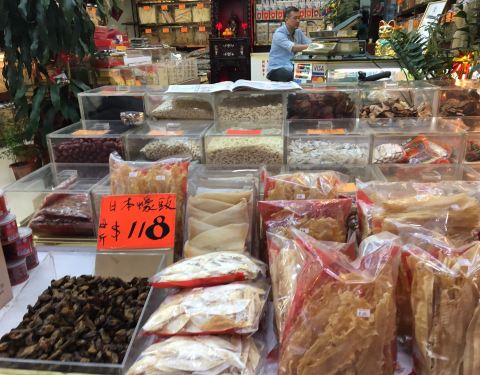 从德辅道绕往文咸西街,老街不长,据说东西文咸街历史上遍布南北行,现在仍以经营海味参茸滋补药材的老字号为主。 叶问晚年在文咸西街开馆授徒还是经营南北行已难寻踪,大隐隐于市,小隐隐于野。 没想到立锥之地库存惊人,滋补一条街果真不是浪得虚名。