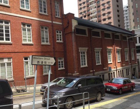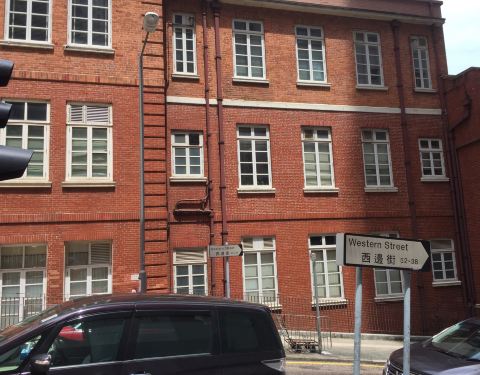 英皇书院位于般咸道与西边街的交叉口,建于高高的斜坡之上。如果从西边街过来,一路都是大斜坡,很是累人;最好是港铁西营盘站C口出来走般咸道会轻松很多;或是走正街 ,一路都是自动手扶梯。英皇书院是典型的爱德华时期的红砖建筑,差不多类似的建筑还香港还有油麻地的红砖屋。书院有南翼及东、北两翼,环绕中央的方庭而建,但内部的结构游客并不能进去看到,只有站在书院外面,看看那大树遮荫的小庭院。