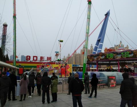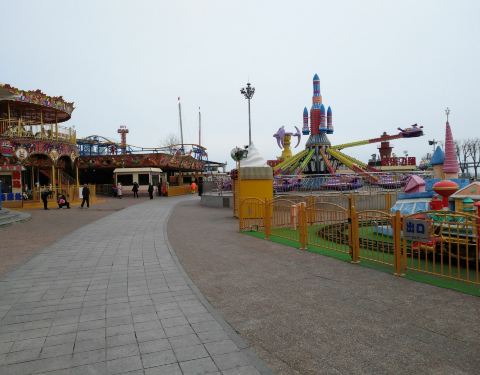 游乐场在广场的边上,靠近海边,可以看到跨海大桥的景色。游乐场的娱乐设施很多,适合儿童和年轻人玩,摇摆龙船和高空翻滚的缆车小屋很刺激。节假日这里是热闹非凡。