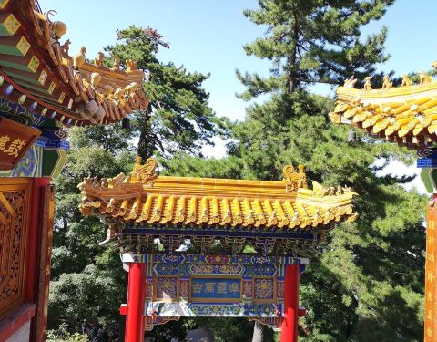 ...古观庙宇,配上林间小道,景色非常优美,清代诗人王又旦到此后随作诗一首:“探幽凌绝境,谒帝陟层巅