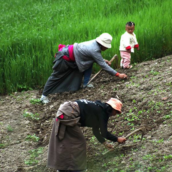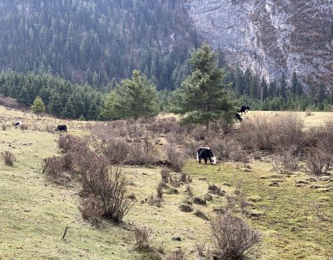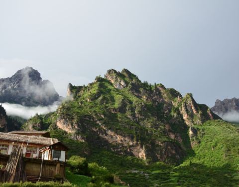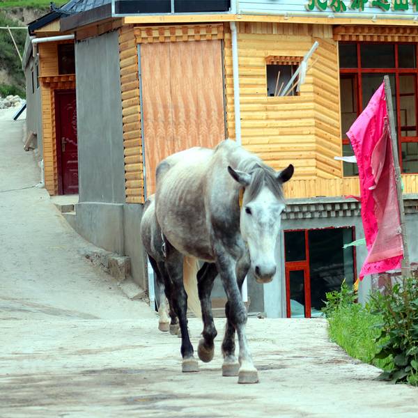 这里更靠近石镜山祖孙聊天得得马蹄声,两匹马不知从那里来,回去那个家,反正老马识途。背着娃儿干农活,很是辛苦的。归背靠大山的洛克之家这是出山的方向想去仙女湖看看,但看天色不怎么妙,时间也不够,算了,回客栈。 要走出这里却不怎么方便。这里没有班车,到县城迭部,或者去红原都只能包车。 和客栈老板打招呼,约好了一台小车,连司机一车5人,明天出发若尔盖草原和黄河第一湾。 一早吃了早餐,坐等车到。