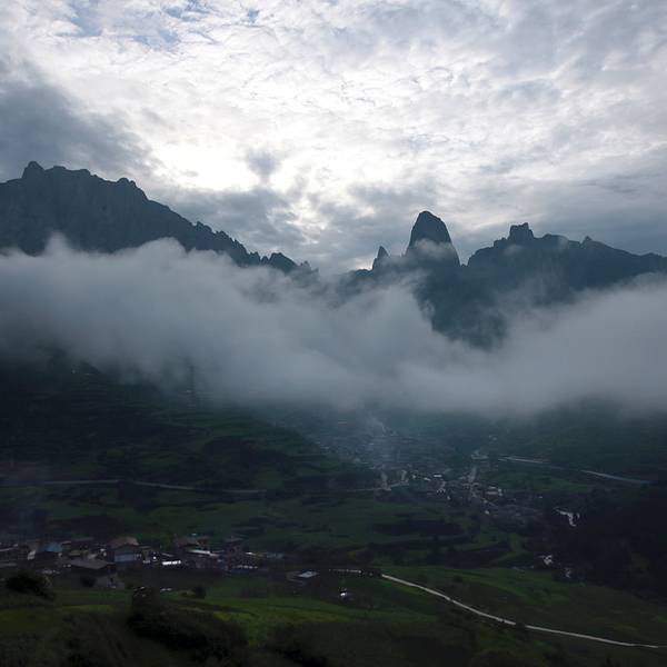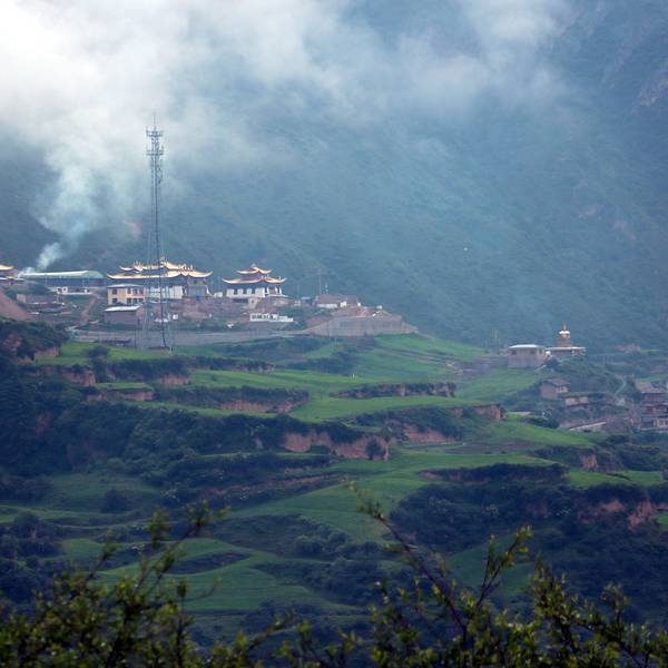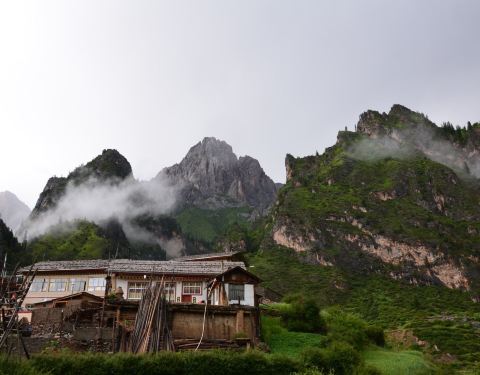 吃了晚饭,这里的夜生活就没啥特别了。山区,农户习惯早睡早起,所以20:00点后,基本就一片乌灯黑火的。 然后21:00后,开始下雨,下的大雨,心念中的扎尕那星空银河就这么烟消云散去。 那么早睡,看明天的天气如何。 第二天一早,天色灰朦。雨后的半山云是有的,只是有些灰,拍摄效果不太好。远处的东哇村在云雾中隐现天色好象有变好的迹象,石镜山在云中现身。其他游客还未现身,很是清静。业日村,我在这村住宿,本来是看日出的好地点,但今天没戏了。拉桑寺院炊烟起,在制作早饭了。绝美的风景,对喜欢摄影的人来说,就差了一点阳光。