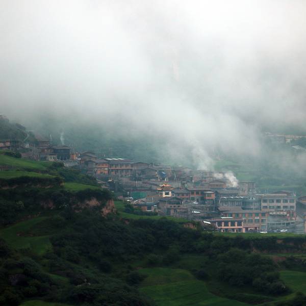 业日村,我在这村住宿,本来是看日出的好地点,但今天没戏了。 拉桑寺院炊烟起,在制作早饭了