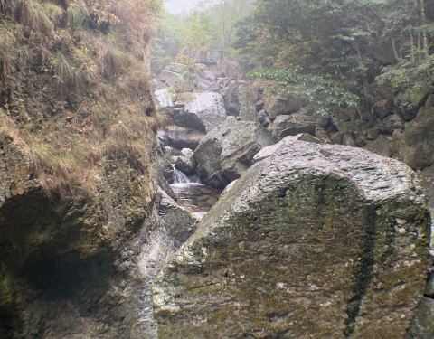 这个景色真让人惊喜,刚入景点,小道两边古树成荫,泉水清澈,小鱼欢快畅游,往深处走,左右山峰陡峭、巨石错综,时不时有瀑布在你眼前出现! 除了景色迷人,在这国庆长假,居然没人,爽爆了,下次一定再来!!!